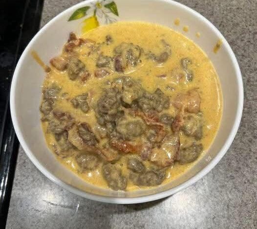 1. Cook ground beef and bacon in a pot until browned. Drain excess fat.